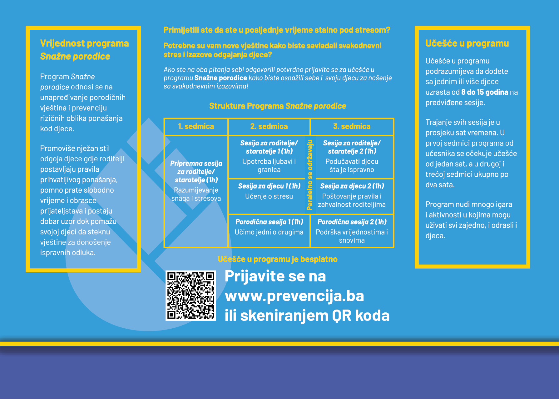 We invite families who wish to improve their parenting skills and contribute to the healthy development of their children to apply for participation in the Strong Families program.